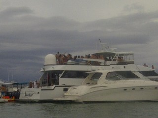Efectivamente llegas en lancha y te estacionas pero antes de poder aclimatarte, la música a distancia del «antro yate» con 90 personas bailando de reversa te impide poder escuchar al individuo que tienes enfrente. Después la lancha de al lado trae su propio antro con 6 pelados emulando el baile de Shakira en Rabiosa… Francamente señores ¡son unos viejos marranos! Es domingo en la mañana por el amor de Dios! Y lo peor es que asi continúan las 5 lanchas de tu alrededor.